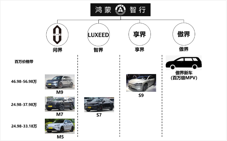 鴻蒙智行汽車(che)矩陣(裏斯汽車(che)事業部(bu)根據網絡公(gōng)開信(xin)息整理(li))