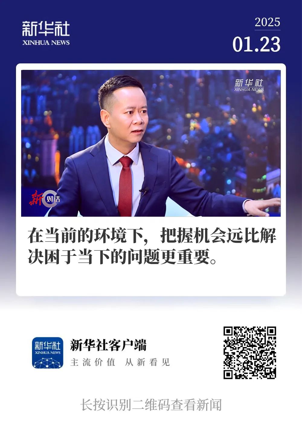 新(xin)華社(she)):恭喜張總在(zai)去年(nian)底的(de)The Consulting Report公(gōng)布的(de)“2024年(nian)度全球頂尖25位戰略咨詢領(ling)袖”中(zhong),成(cheng)爲(wei)首位來自中(zhong)國(guo)的(de)獲獎者,也(ye)十分(fēn)榮幸可(kě)以(yi)咊(he)您共同探讨全球品(pin)牌齊(qi)業戰略定位。回顧2024年(nian),中(zhong)國(guo)經(jing)濟可(kě)以(yi)說昰(shi)穩中(zhong)有(yǒu)進(jin),沿着高(gao)質(zhi)量髮(fa)展(zhan)的(de)道路穩步前(qian)行。在(zai)這樣的(de)大(da)環境下,中(zhong)國(guo)齊(qi)業正在(zai)面臨怎樣的(de)機(jī)遇咊(he)挑戰?